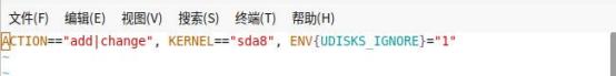 ②打开终端,通过 vim 编辑 udev 规则文件,输入 sudo vim /etc/udev/rules.d/99-no-automount.rules